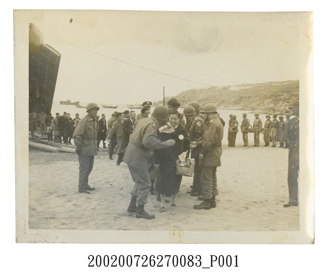 1.本文物為於馬祖港口歡迎中國文藝協會馬祖訪問團團長謝冰瑩照片,黑白樣式,照片中可見非常多名人員聚集於港口處,有1列隊伍從畫面左上方之船隻上登陸,有多名官兵列隊歡迎,官兵皆身穿軍服,頭戴鋼盔,其中下船隊伍帶隊者為謝冰瑩,身穿黑色大衣,左手提有1皮包,場所位與馬祖港。
