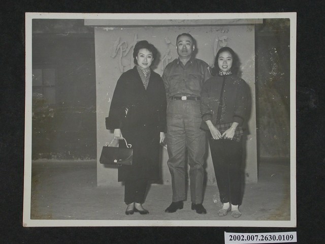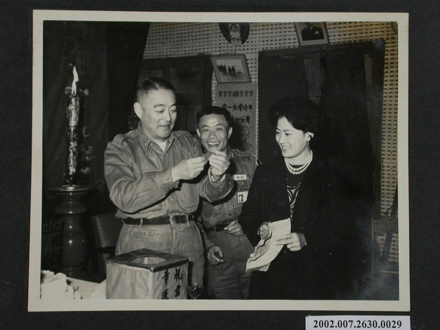 2002.007.2630.0109 陸光平劇隊張正芬及李居安與彭指揮官合影