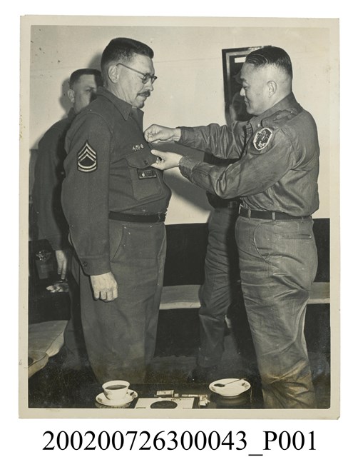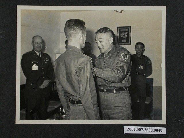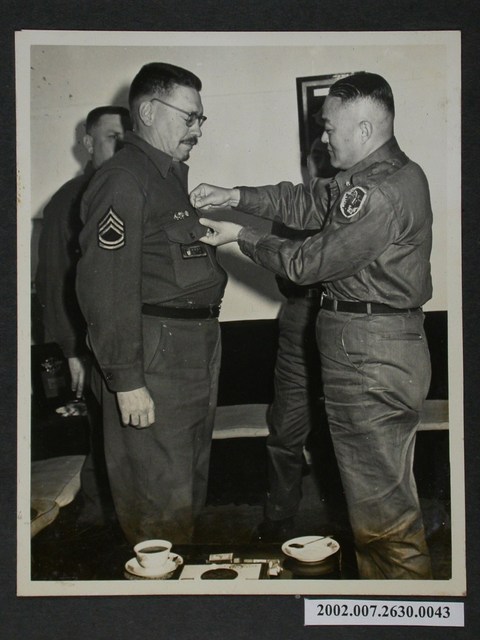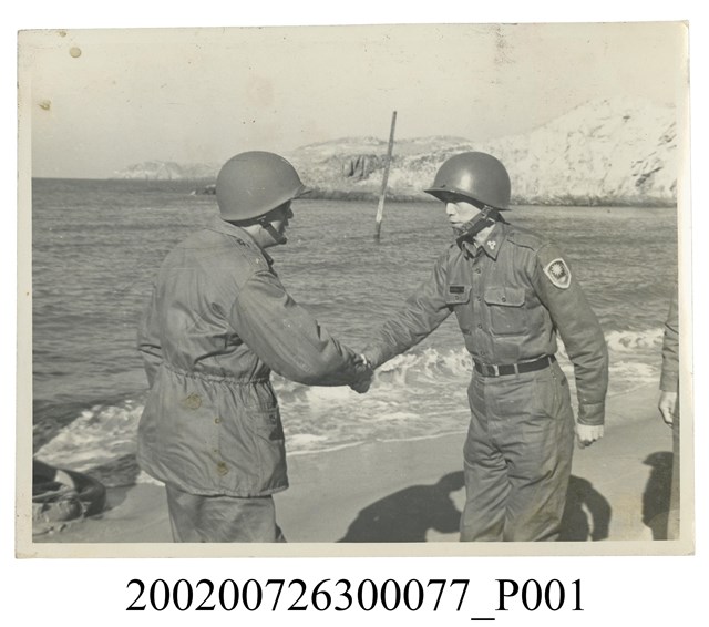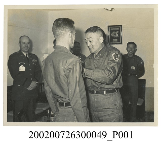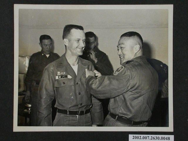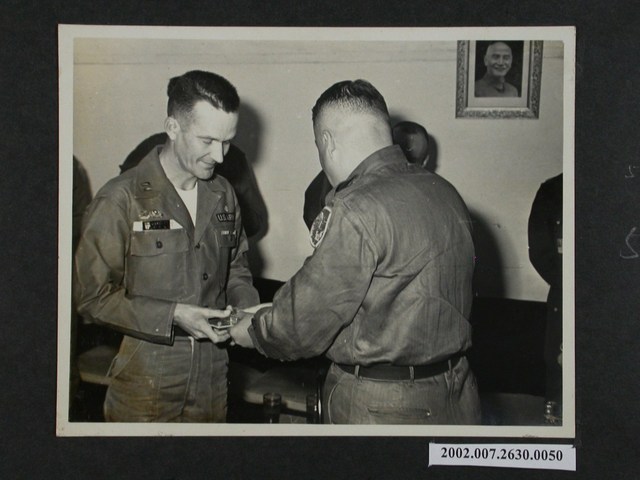 2002.007.2630.0048 彭指揮官為萊尼上尉佩戴金馬紀念章及贈送紀念品