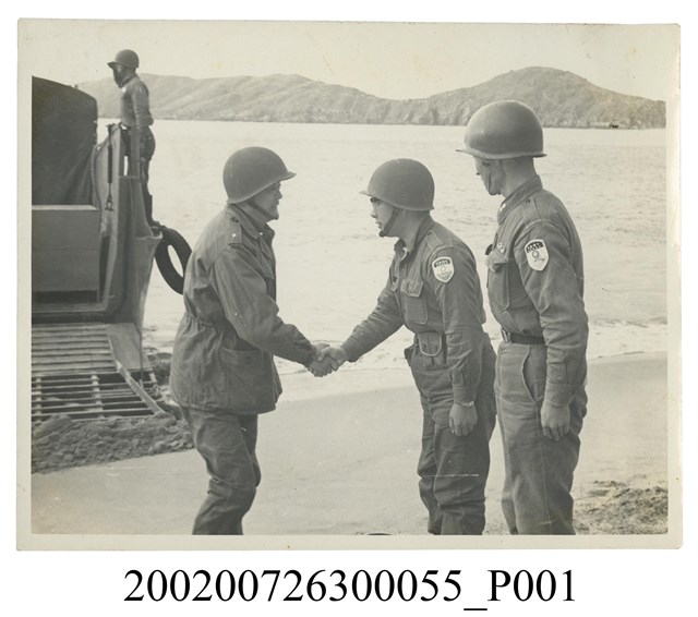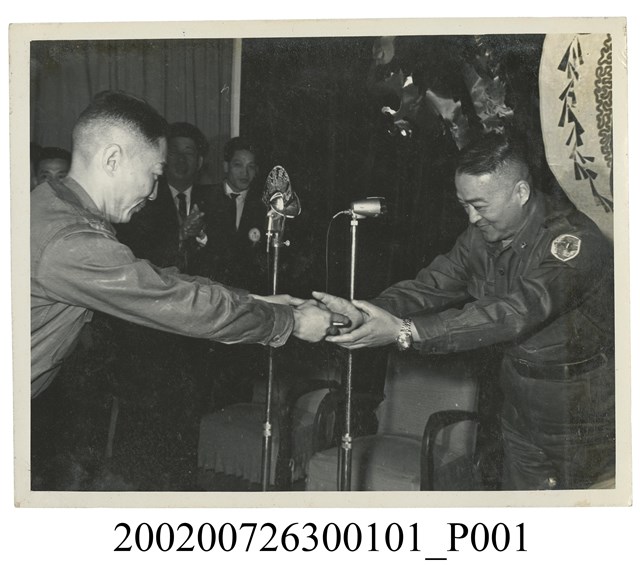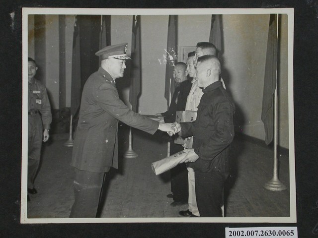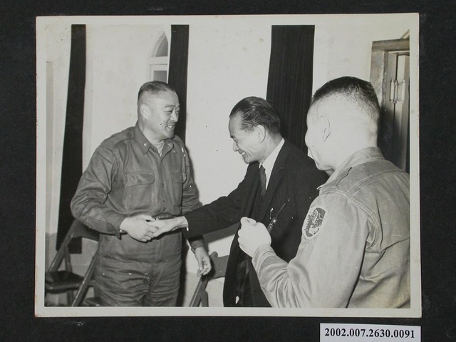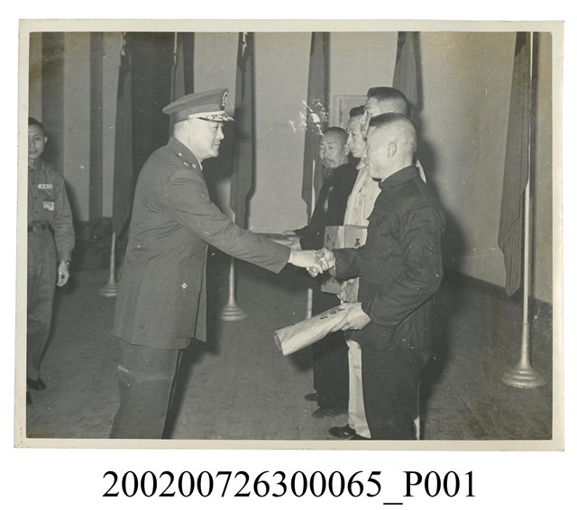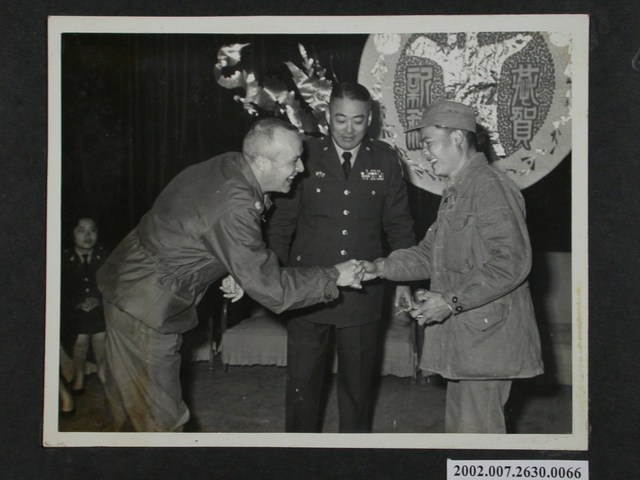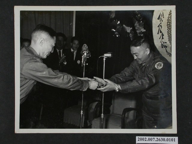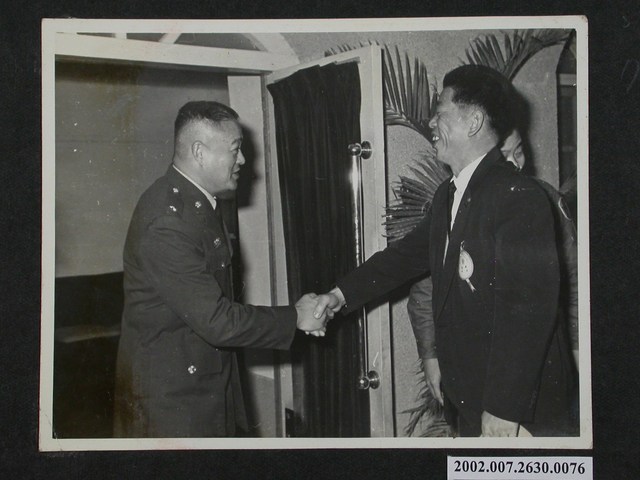 2002.007.2630.0076 彭指揮官與屠宰業勞軍團團長童坤握手