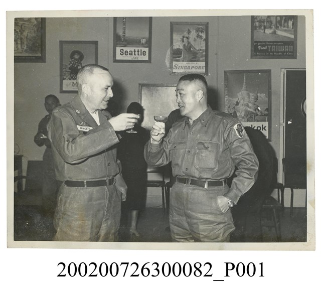 2002.007.2630.0083 彭指揮官於顧問組酒會上與首席顧問華色特中校合影