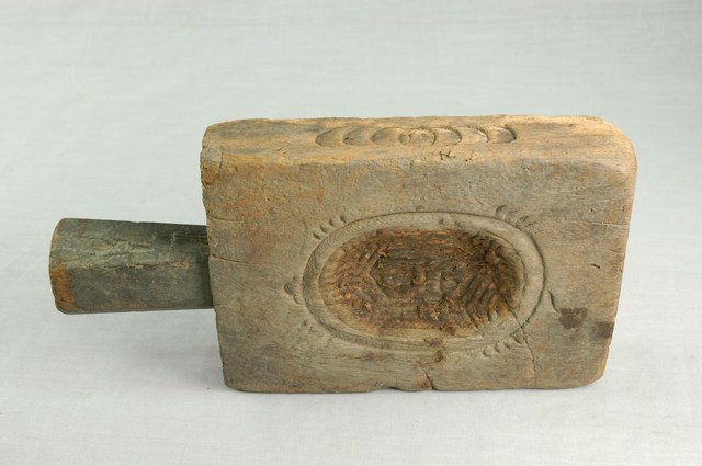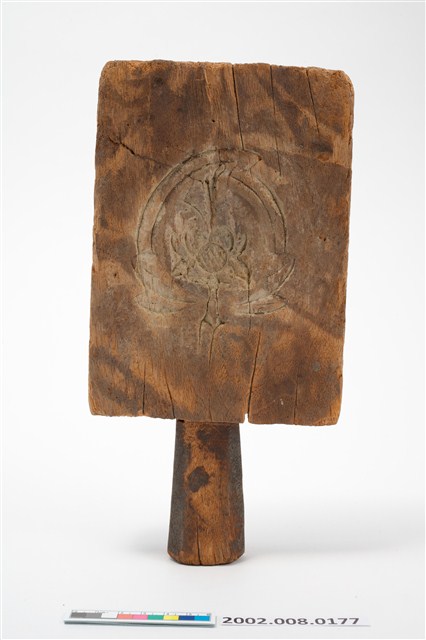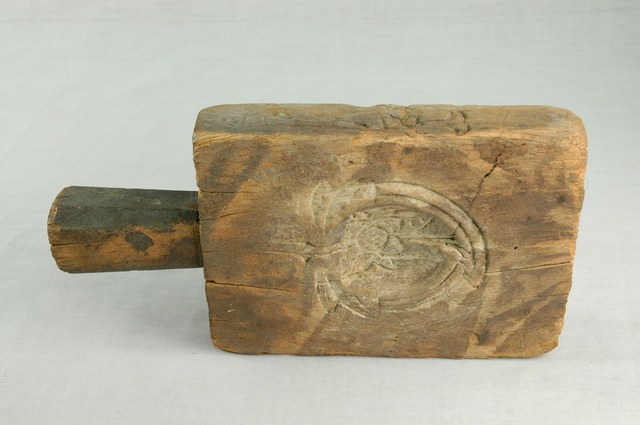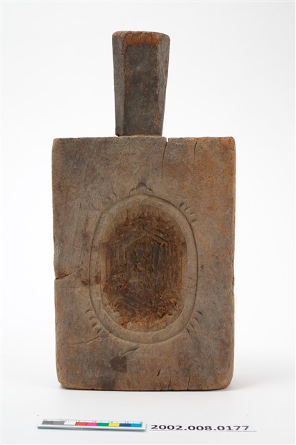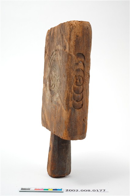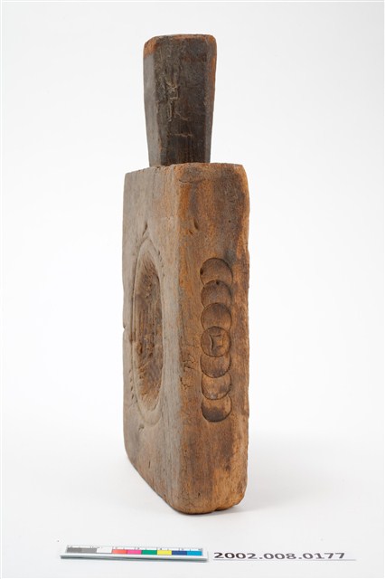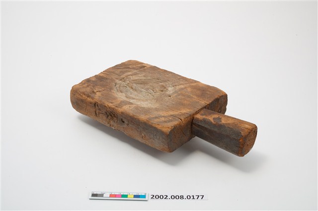 2002.008.0177 長方形四面雕龜桃連錢魚紋帶柄粿印