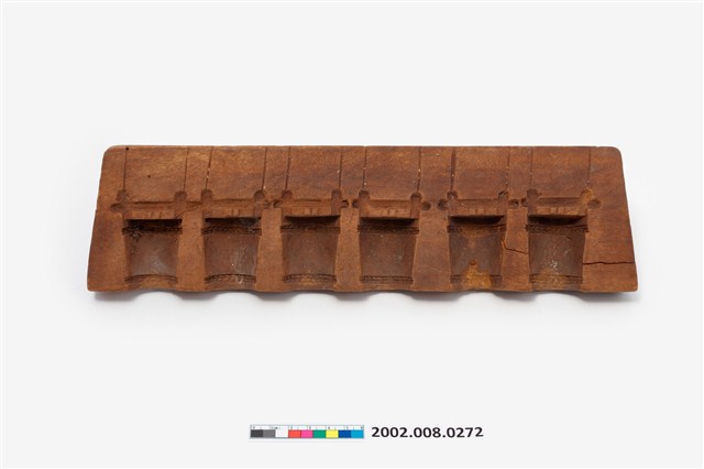 2002.008.0272 長條板單面雕六木桶糖塔模子