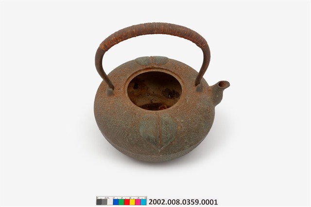 壺體包括壺身、嘴(流)、提把等部分。壺身為橢圓球狀、平底,緣口兩側有心形葉狀紋飾,流為三彎舌口嘴,提把為圓弧形提樑式,並以籐皮纏繞。茶壺用來盛裝水或茶,或於泡茶時使用。