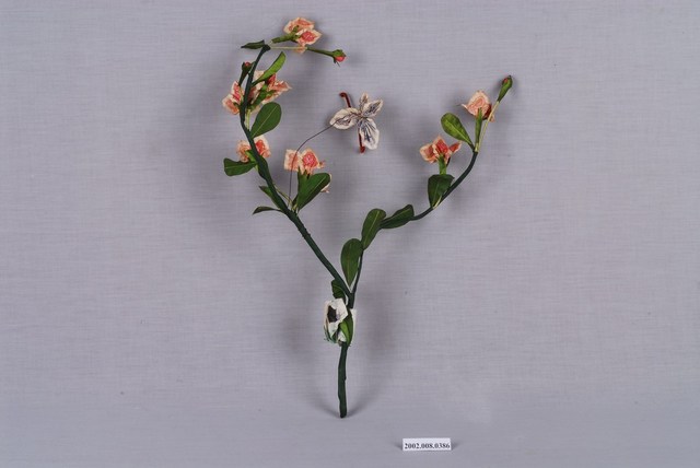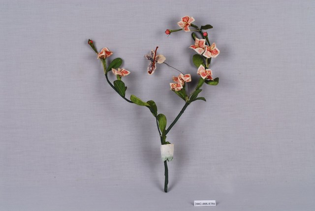 1.本物件為7朵花,花苞的部分皆由10圓新台幣紙鈔摺成,另有紫色蝴蝶則是由50圓紙鈔摺成,栩栩如生,紅色代表喜氣吉祥。唯所用之50圓紙鈔無法辨識版本。