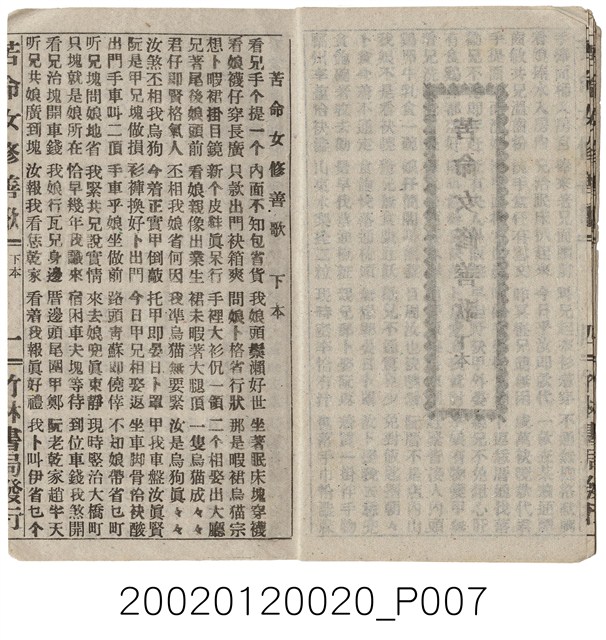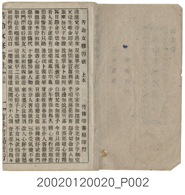2002.012.0020 竹林書局出版《苦命女修善歌》歌仔冊