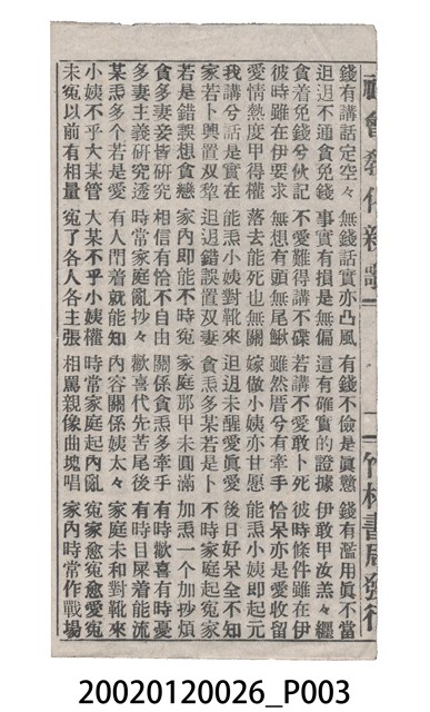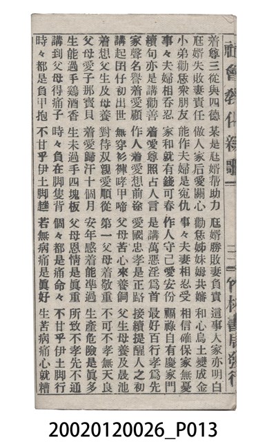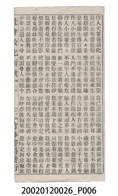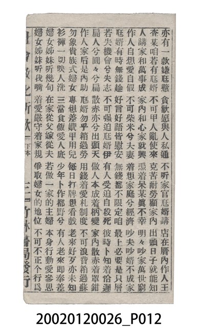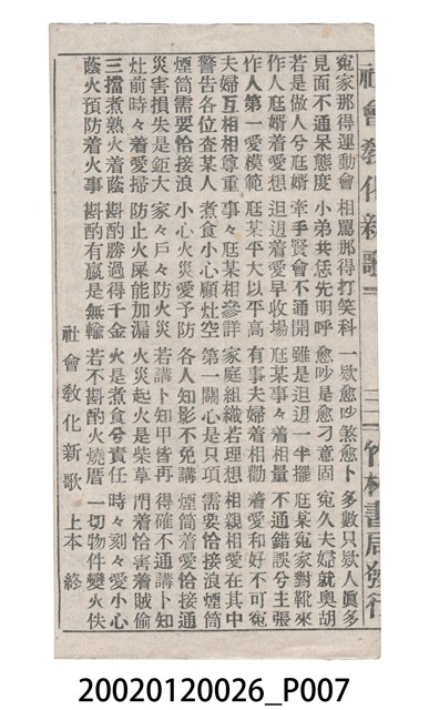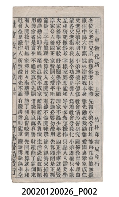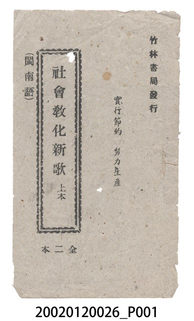 文物保存良好,全二本,此文物為上本。除此之外在乾淨整齊的書皮封面寫著:「實行節約 努力生產」等字,可見得與當時的社會、政治環境相關。在封面上標示著閩南語,書寫形式同樣是七字一句四句成一行,每頁是十三行。 內容是講述有一位叫林達標的人,家住在大甲鎮,對於社會情形皆有研究。因此勸說進入文明社會,應該要保留一些優良的傳統美德與新觀念,例如:節儉二字是真理、有錢不儉是真憨,另外一夫一妻即是公道、夫婦亦即能協和、夫妻相互友善尊重等,另外大某小姨愛能和,還有孝順的重要性。