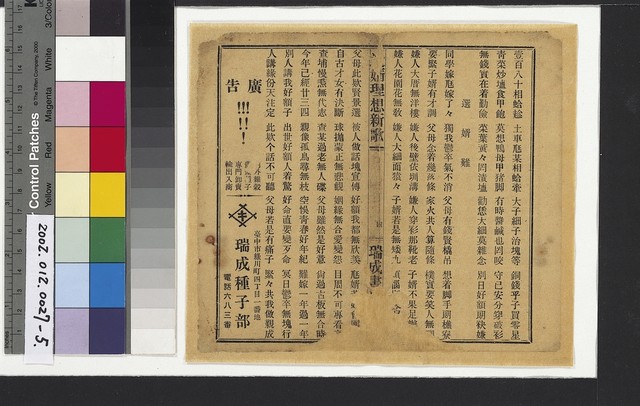 瑞城種子部出版《姻緣理想新歌》歌仔冊