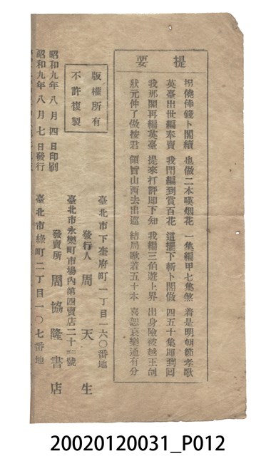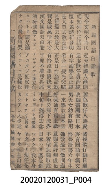國語、日語學習、歌仔冊、周協隆書局