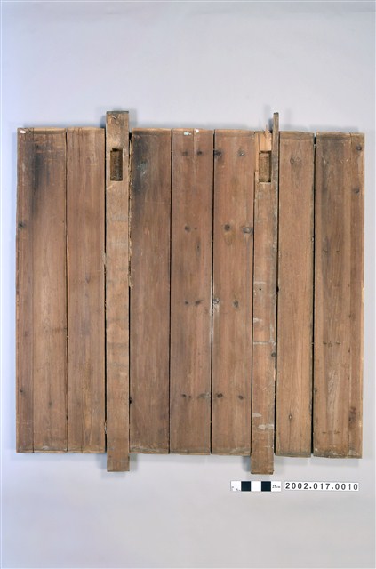 為臺中大里林大有宅彩繪板壁。以四幅卷軸畫為底圖區分塊面,由署名「紹年」者繪以書法,書法內容為臨摩黃庭堅習草書自白,「余寓居開元寺之怡思堂,見江山每於此中作草,似得江山之助。然顚長史狂僧皆停(倚?)酒而通神入妙。余不飲酒十五年,雖欲善其事,而器不利,行麾處,時時蹇蹶,計遂不得復如醉時書也。學閩(周?)宗兄之屬,贊如 紹年。」本件為板壁的身堵部分,以九片木板並排拼成,上下作凸榫以接水平向支條,後有兩支垂直向支條。板壁是木板拼接的隔間牆,通常用於廟宇或大宅的廳堂側牆。作法主要有兩種,一種是將支條隱藏於背面,正面平坦者,一種是露出支條為框,中置木板者。兩種板壁通常正面皆施彩繪。本件身堵採支條在背面的作法,頂堵與裙堵則為枝條在外作法,結合兩種板壁形式。背面貼有「FL-05a」與「FL-05b」標籤。
