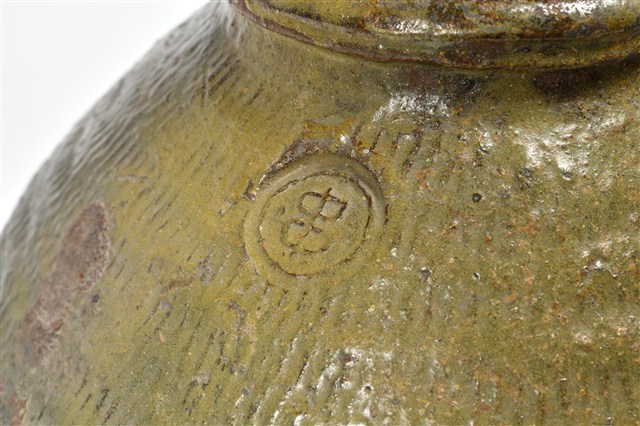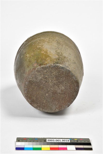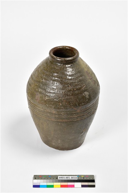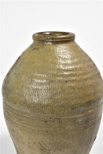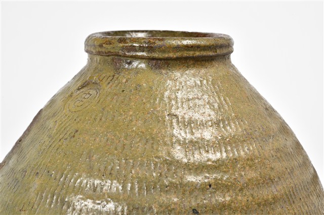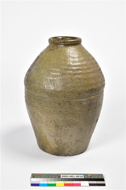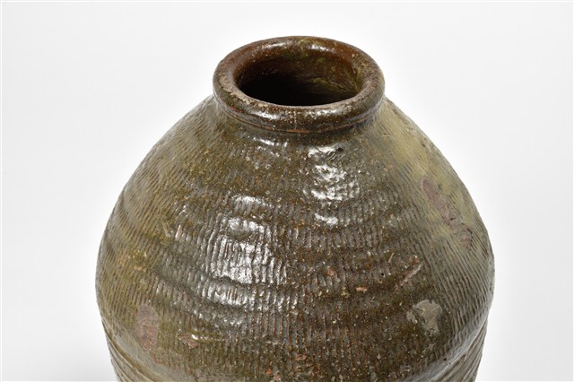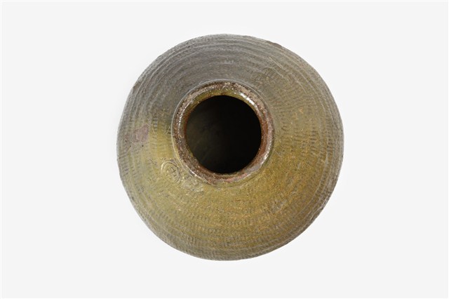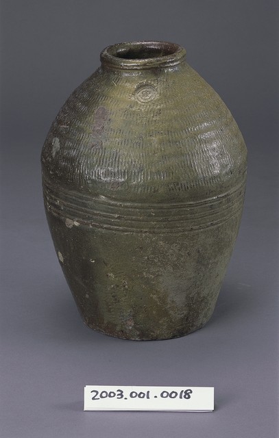 2003.001.0018 橄欖綠釉壓印紋陶甕