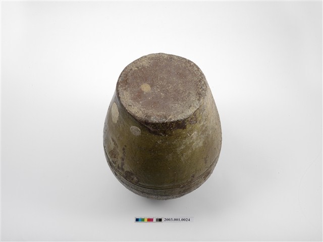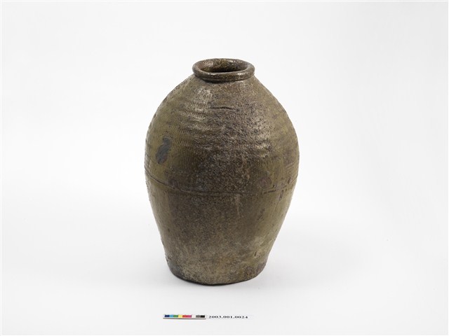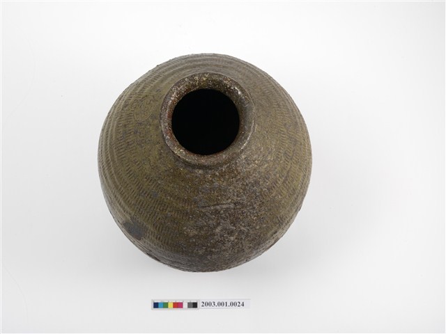 2003.001.0024 橄欖綠釉壓印紋陶甕