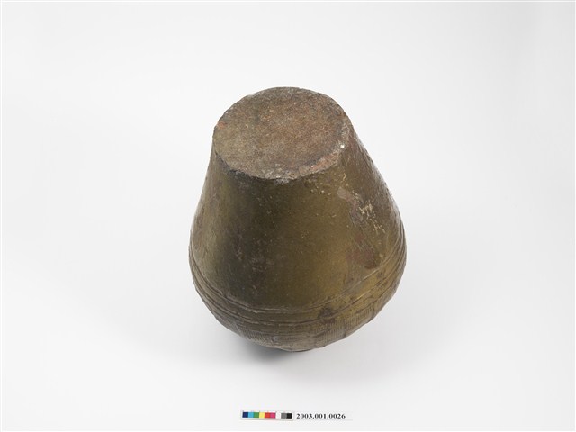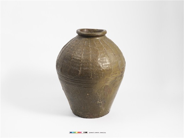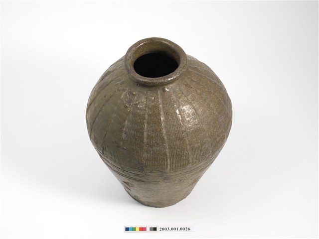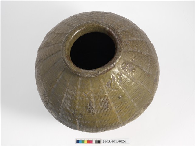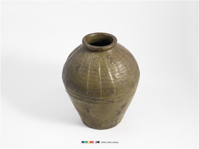 2003.001.0026 橄欖綠釉壓印紋陶甕