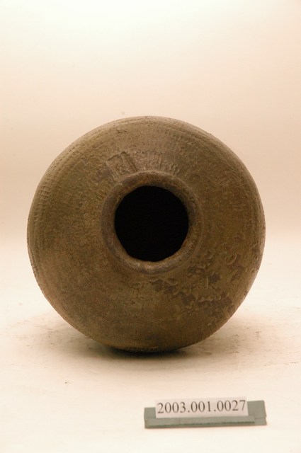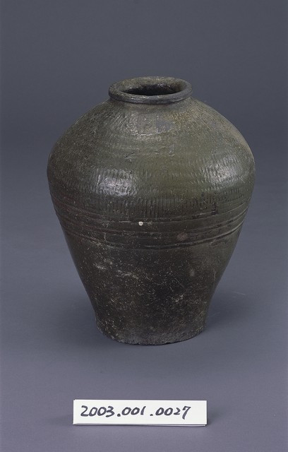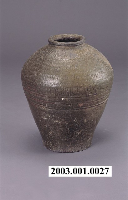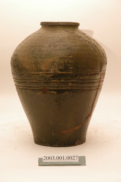2003.001.0027 橄欖綠釉壓印紋陶甕
