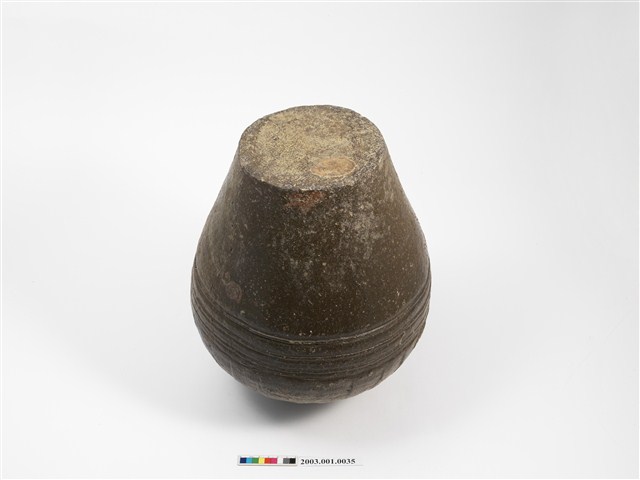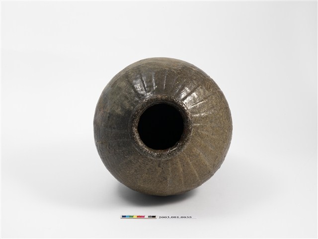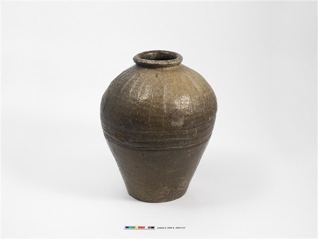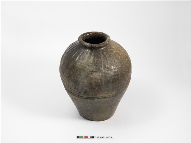 2003.001.0035 橄欖綠釉壓印紋陶甕