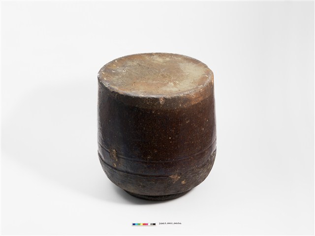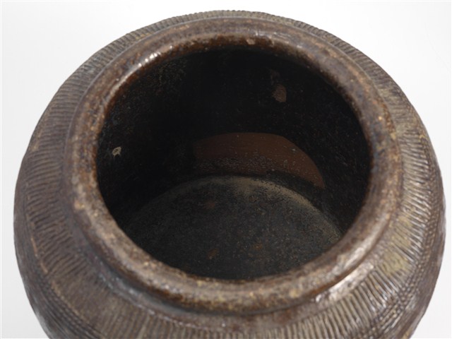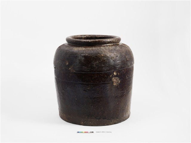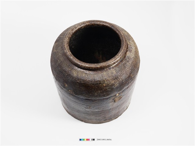 2003.001.0056 醬釉押印線紋方形陶罐