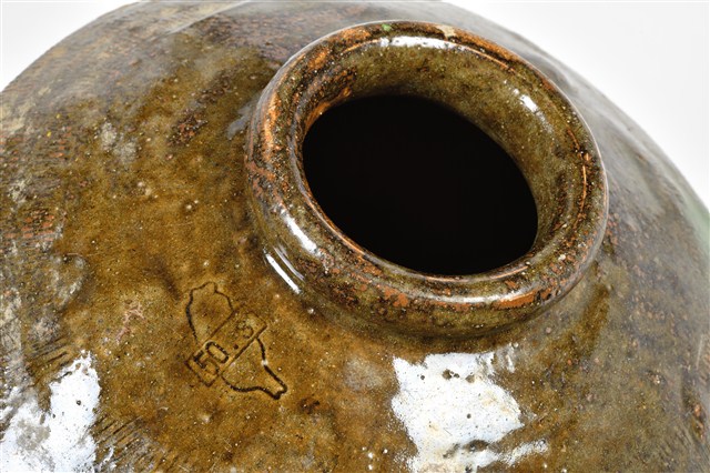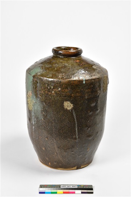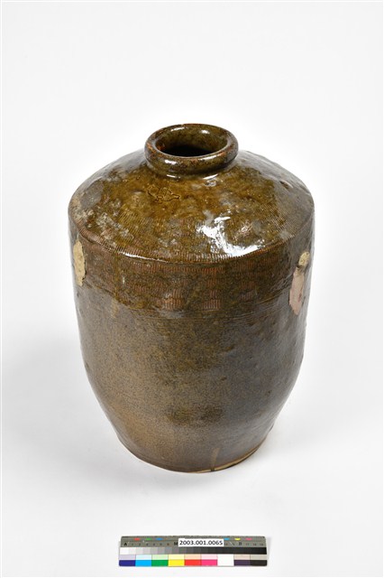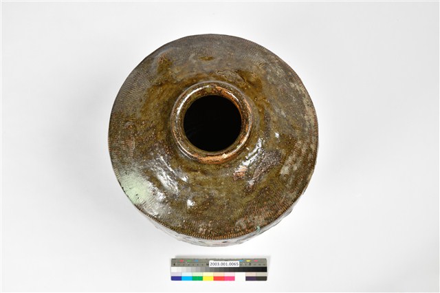 2003.001.0065 醬釉直壁壓印紋陶甕