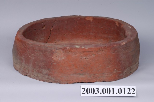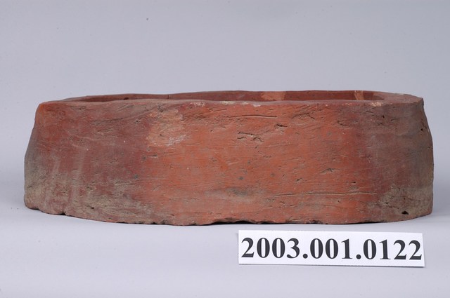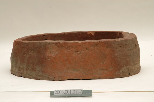 1.本物件為豬槽。材質為陶,乃磚胎素燒飼槽,厚且重,不易因豬隻踩踏而移動。呈圓體,中間挖有凹槽,以便盛裝豬的食物。