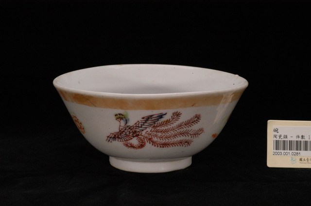 2003.001.0281 彩瓷黃閃光釉鳳凰紋碗