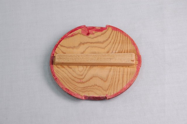 由木塊製成的圓板,外側以同心圓狀交替漆上紅、黑兩色,內側保留原木色,中央有一長條狀木塊凸起。「飯斗」(pn̄g-táu)為臺灣閩南語,意指「飯桶」,是用來盛裝米飯的器具,飯桶蓋一般用來蓋在飯斗桶身上方,用來保溫和防止落塵或其他異物掉進飯裡。由於臺灣盛產稻米,早期幾乎每個家庭裡都有木製飯桶,不過戰後之後逐漸被鑄鐵鍋和電鍋取代。