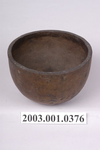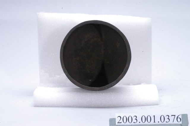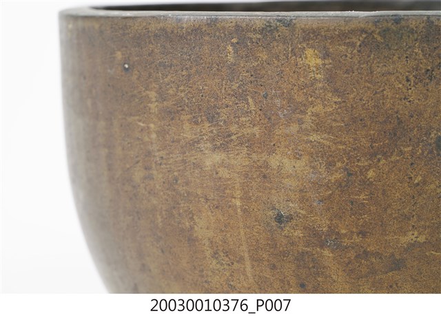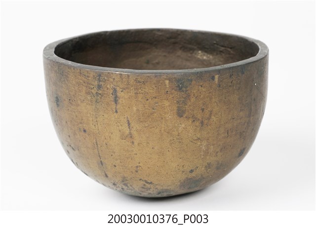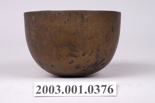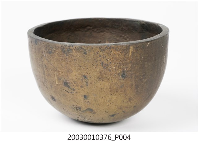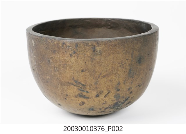 本件為銅質圓磬,無紋飾。罄又名缽,造型多作圓底、直身的碗狀,材質多為銅鑄,故又稱銅罄或銅缽。原為早期佛教僧侶乞食、用餐的器具。因為敲擊可發出清亮的金屬共鳴聲音,後來成為佛教樂器之一。臺灣道教也借用為科儀的樂器。安置於供桌的小尺寸圓磬,下方須以布製的軟墊固定,也可減低音量。使用時以短木棒敲擊,通常與木魚搭配使用。