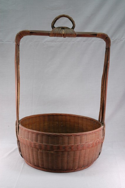 本件為竹編3層𣛮籃之底層,採用臺灣民間容易取得的竹子剖成竹片、竹篾、竹絲,再用竹片、竹篾為支架,以篾條或篾皮交互編織圓形壁體,底層連接提梁耳(提把)以利手提。𣛮籃是傳統民間重要的盛物容器,可裝蔬果食物等物品。