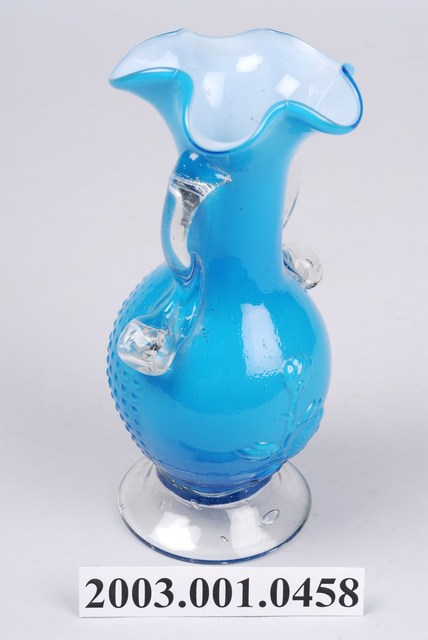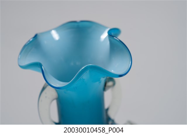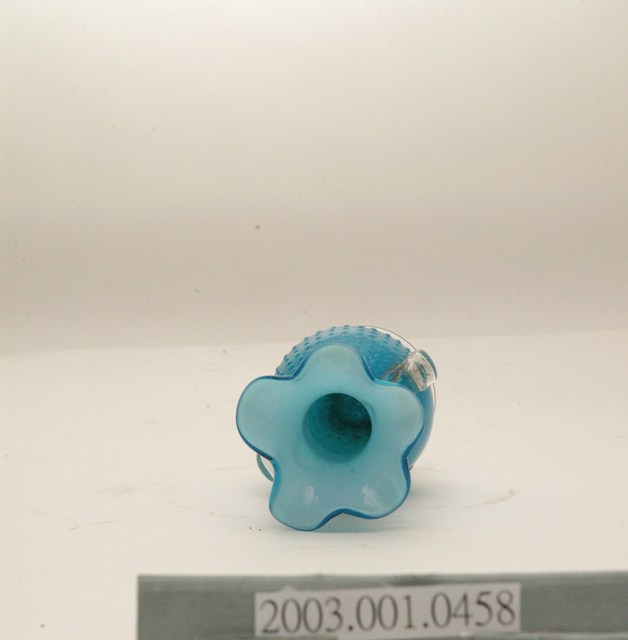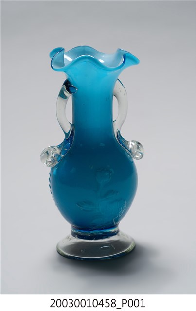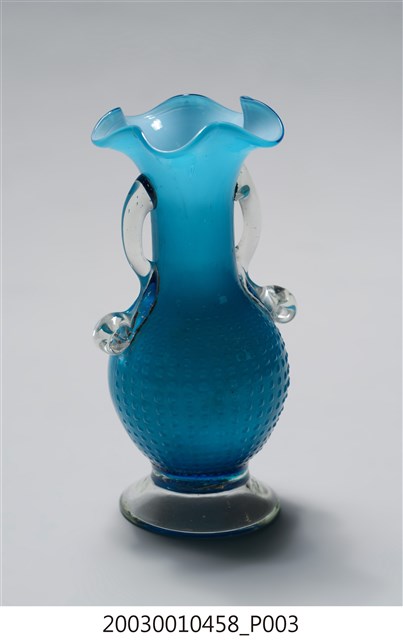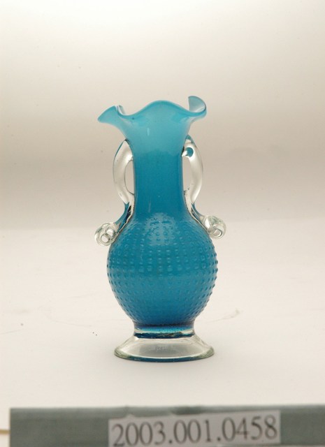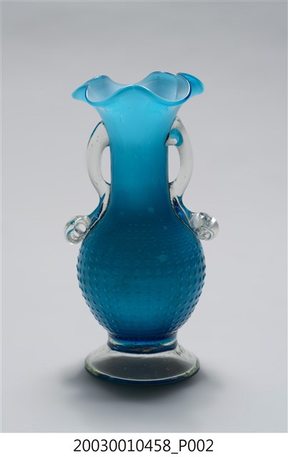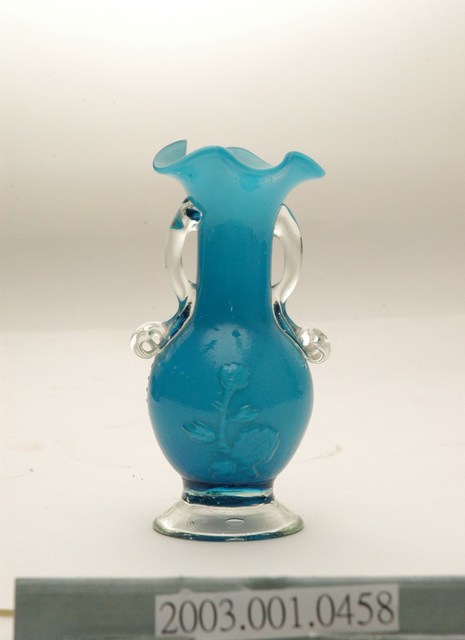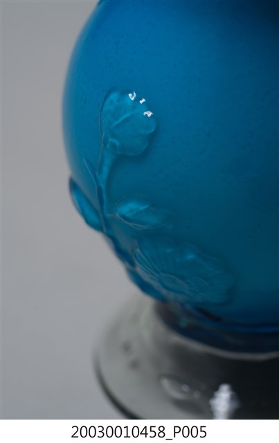 2003.001.0458 藍白雙色牡丹乳釘紋玻璃花瓶