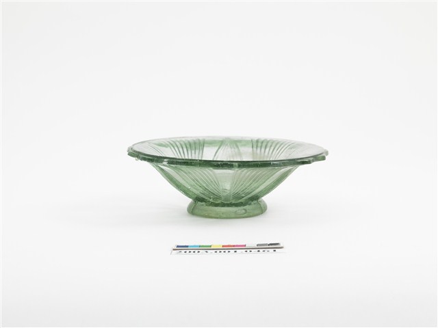 2003.001.0461 敞口花邊翠綠幾何紋玻璃冰碗