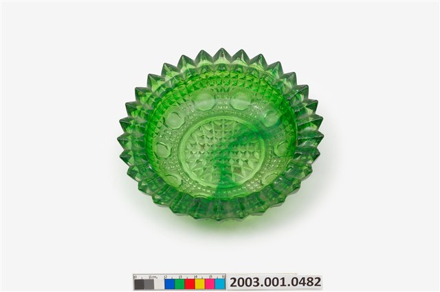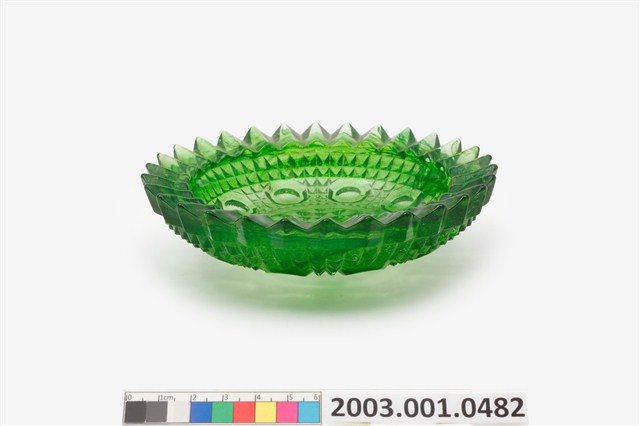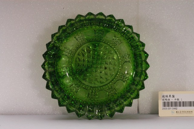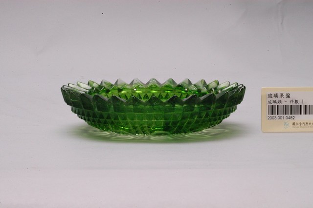 2003.001.0482 翠綠色幾何紋玻璃果盤