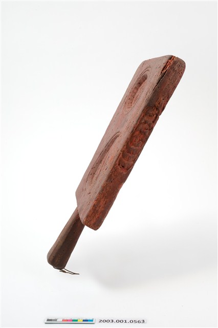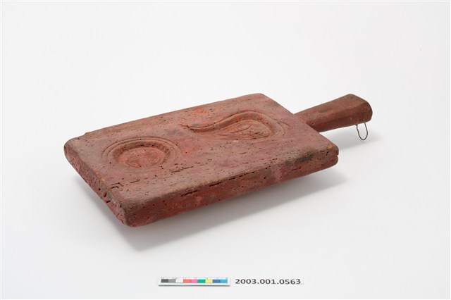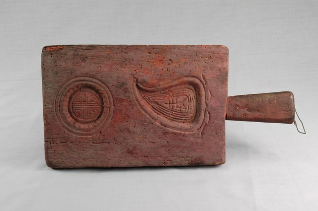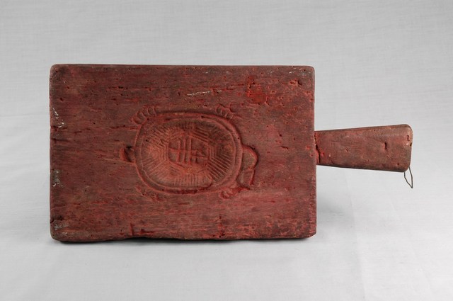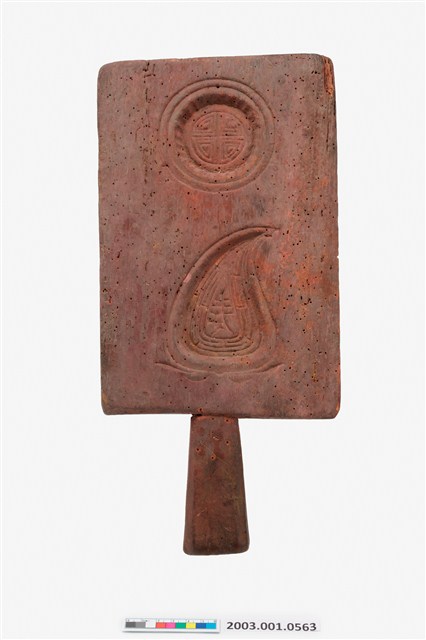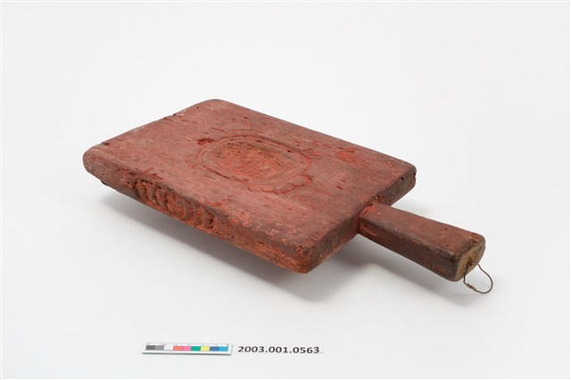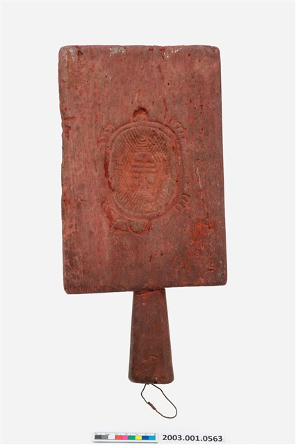 2003.001.0563 朱漆三面龜桃連錢紋帶柄粿印