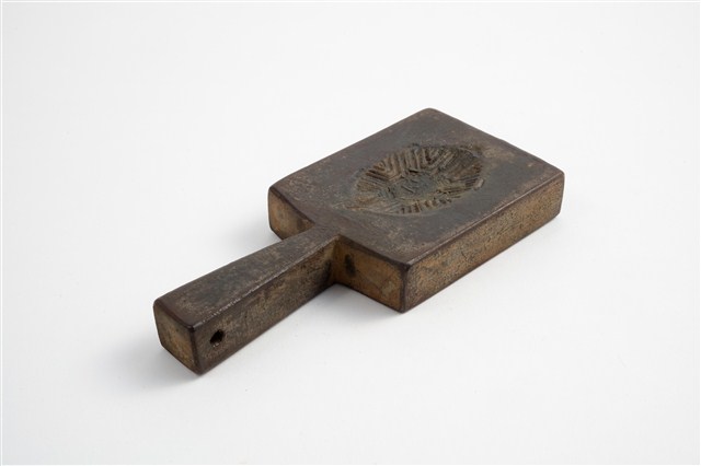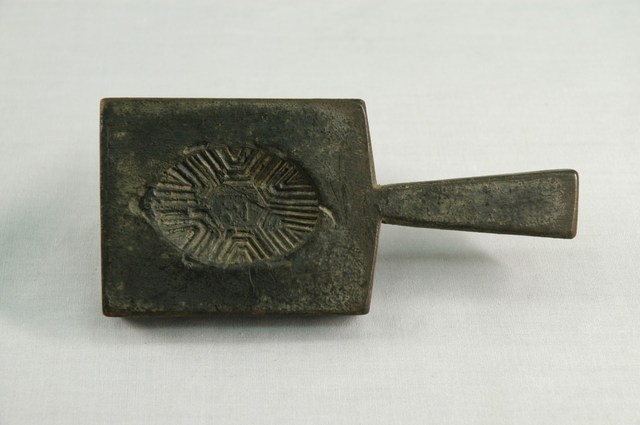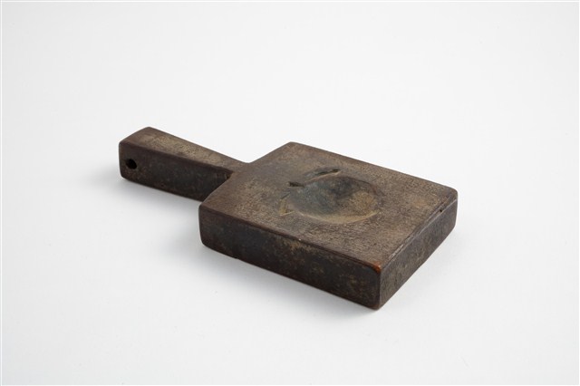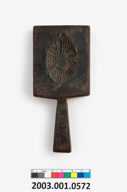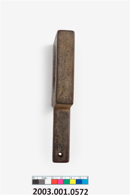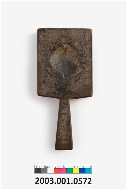 2003.001.0572 長方形雙面雕龜桃紋帶柄粿印