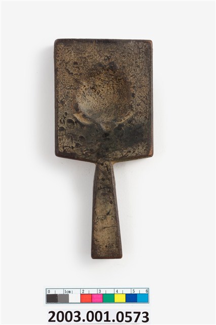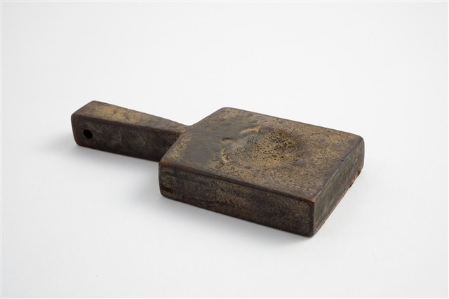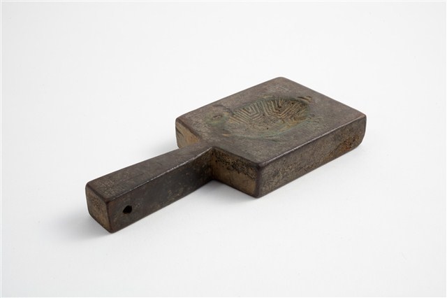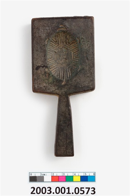 2003.001.0573 長方形雙面雕龜桃紋帶柄粿印