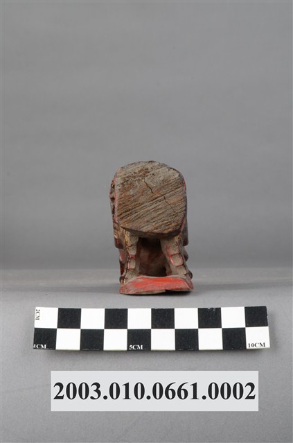 本文物為獅與松鼠木雕組的其中一件,為獅。本組一件為獅,一件為松鼠。兩件獸身姿態、鬃毛等細節雕法相同,頭部一雕為獅,一雕為松鼠。獅背上鬃毛做圓珠狀,耳外揚,較似臺灣清光緒年間以後獅造型。獅子等精細雕刻是清代以後家具的特色,作法延續至今。木雕上紅褐色底漆,身體鬃毛再覆金漆。松鼠頭嘴尖耳大、無額上鬃毛。本組為紅眠床床架之裝飾,頭下腳上的倒爬獸造型。二件相連的構件細節不同,可能是同一件床架上的兩組構件,或屬不同床架。唯臺灣紅眠床少用倒爬獸裝飾,本組文物可能來自中國。獅為傳統吉祥圖樣太獅少獅,諧音古高官太師與少師,象徵仕途順遂之意。