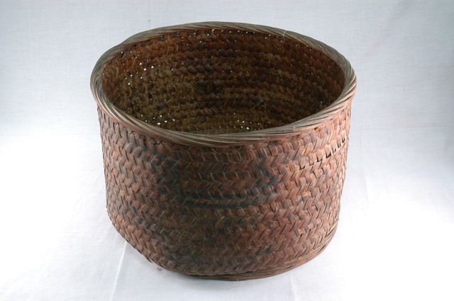 本件為竹編籃子,採用臺灣民間容易取得的竹子剖成竹片、竹篾、竹絲,再用竹片、竹篾為支架,以篾條或篾皮交互編織圓形壁體的空間。竹編籃子可以放置任何物品,有通風和保護的功能。