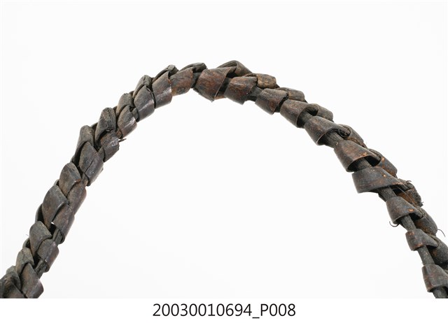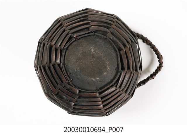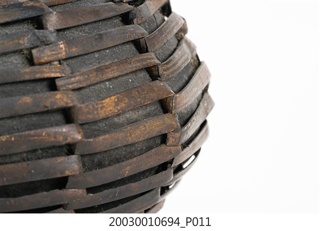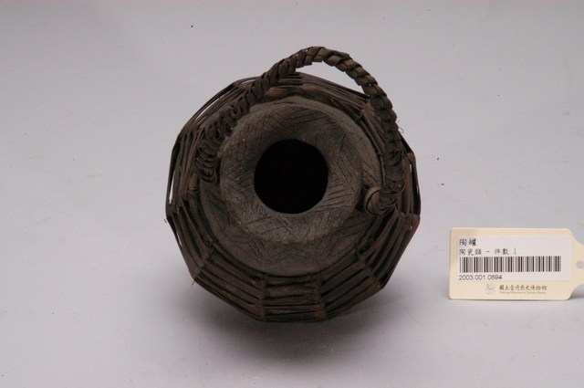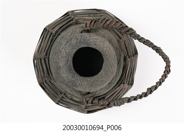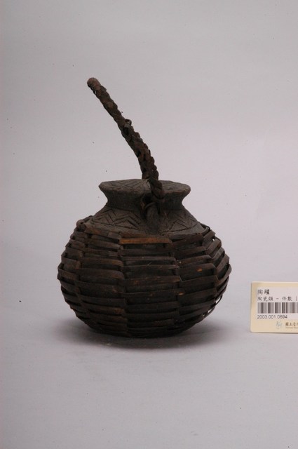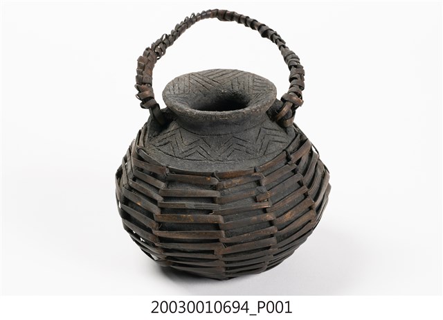 本件藏品為達悟族陶壺。本件陶壺色澤呈棕黑色,形制上為平底、無足、壺身中央寬大類似缽或鍋、壺口處縮小外翻,頸部及壺口刻有斜線三角形紋。本件應為日常生活中飲食或取水用之器具,取水專用之陶壺通常會如本件製作藤編外衣包裹壺身,並在壺口處製有藤製提把。在達悟族的規範中,僅男性擁有製陶資格,同樣也有禁忌須要遵守,而在製作陶器時,會使用木拍搭配鵝卵石拍打,使其外壁質地緊密且平整,製作之餘,也會使用剩餘之陶土製作生動活潑的陶偶,成為該族特有之藝術品。