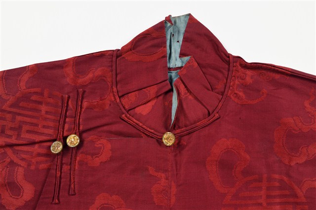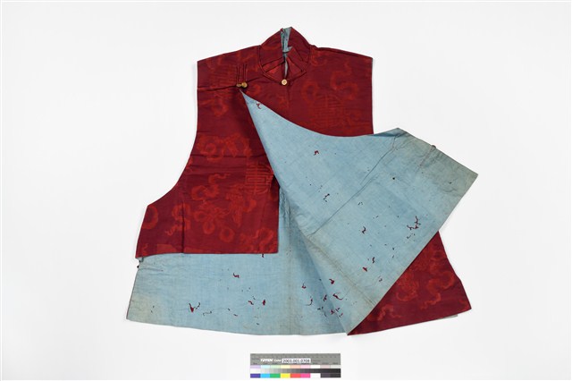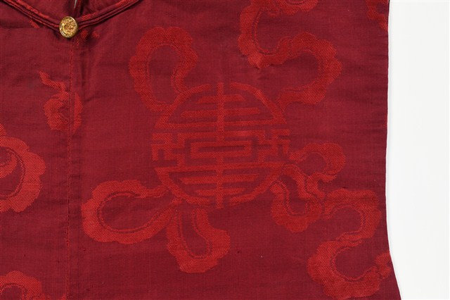 2003.001.0708 赭紅絲質緹花大襟立領男背心