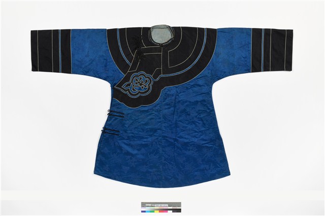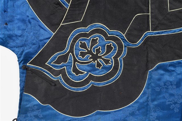 2003.001.0713 藍絲質緹花立領鑲緄大襟女衫