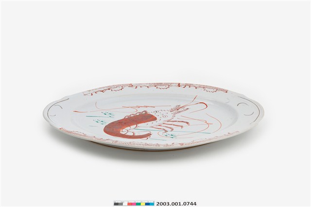 2003.001.0744 紅綠彩蝦紋盤