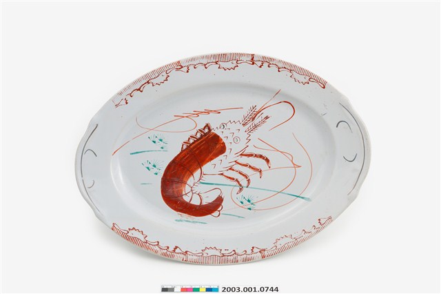 紅綠彩蝦紋盤
