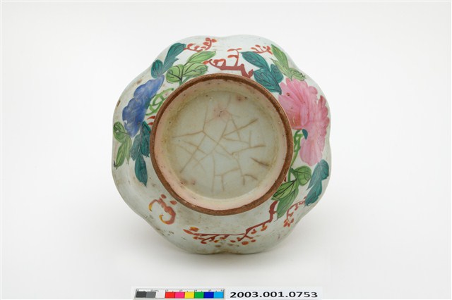 2003.001.0753 彩瓷仙桃花團錦簇紋花口碗