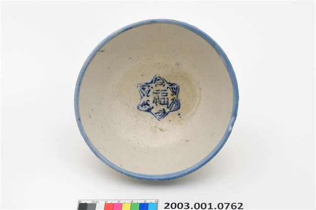 2003.001.0762 青花印花福字紋碗