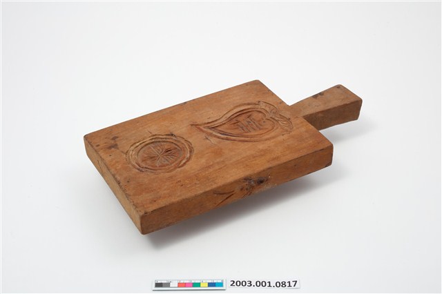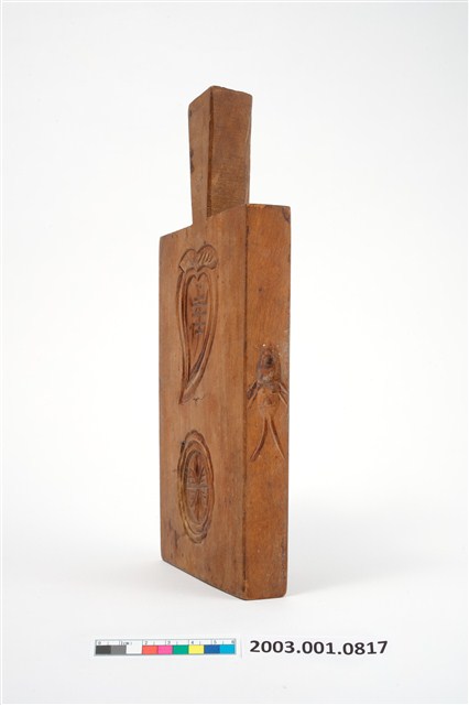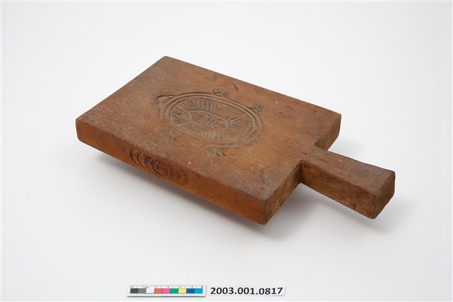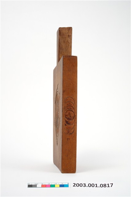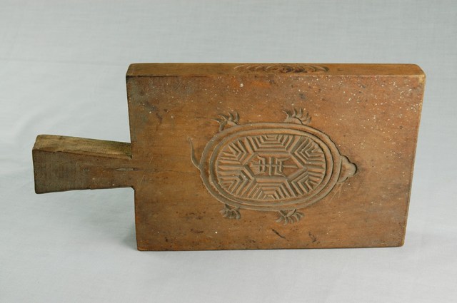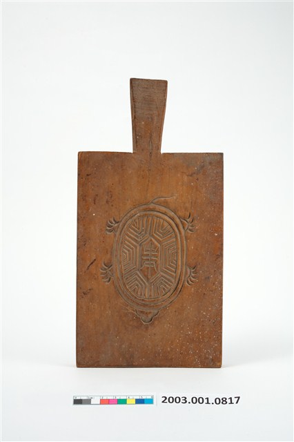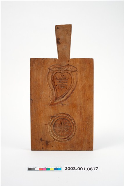 2003.001.0817 長方形四面雕龜桃銀圓連錢魚紋帶柄粿印