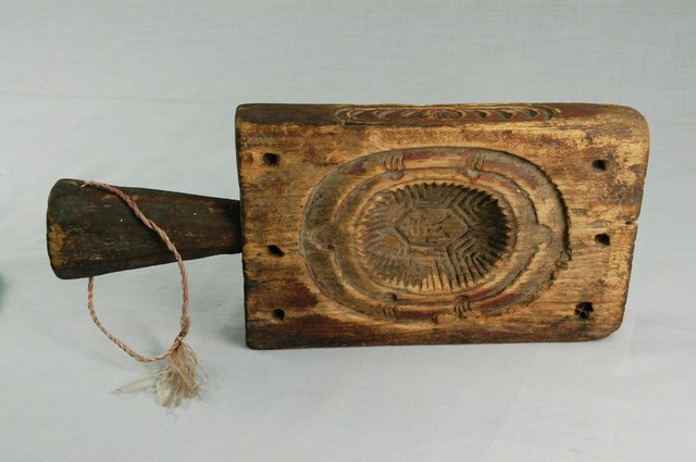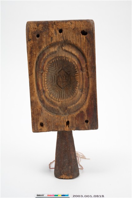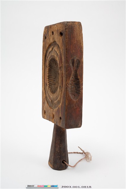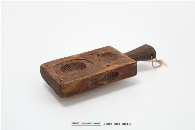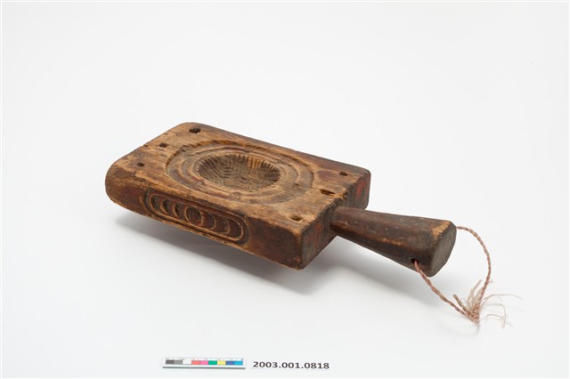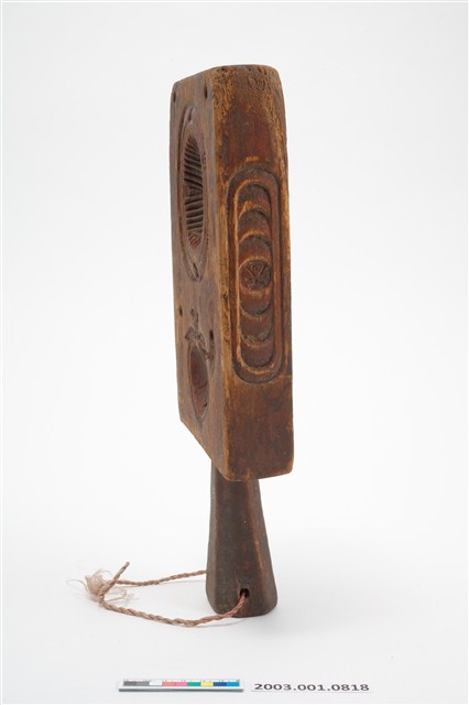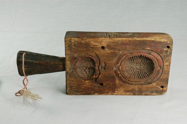 2003.001.0818 長方形四面雕龜桃連錢魚紋帶柄粿印
