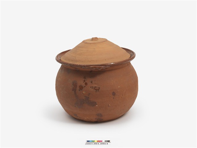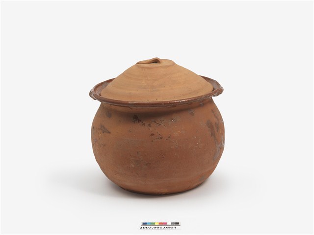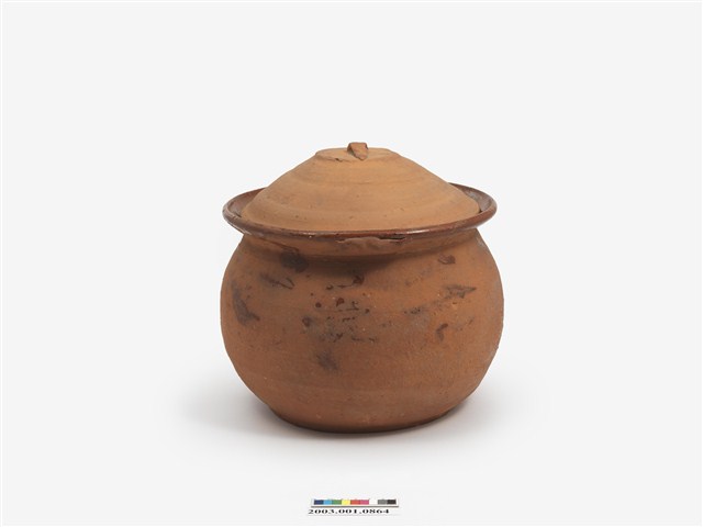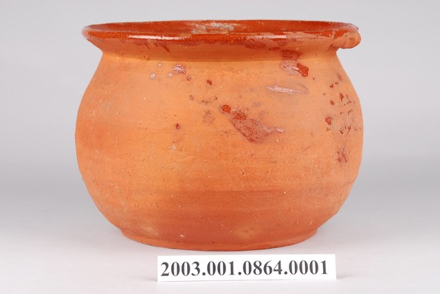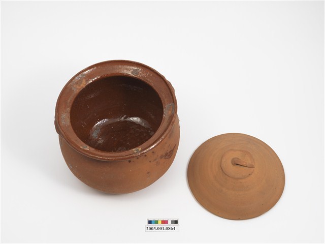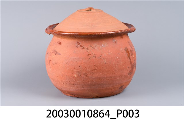 2003.001.0864.0001 素燒帶蓋雙繫陶鍋鍋身