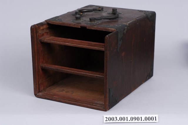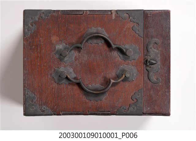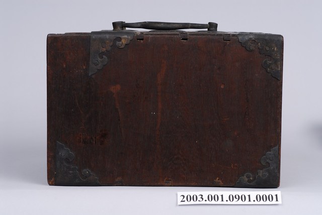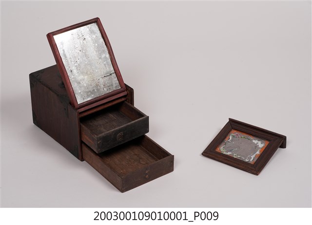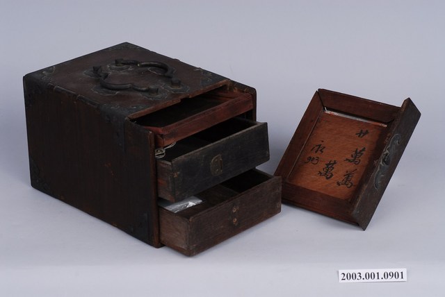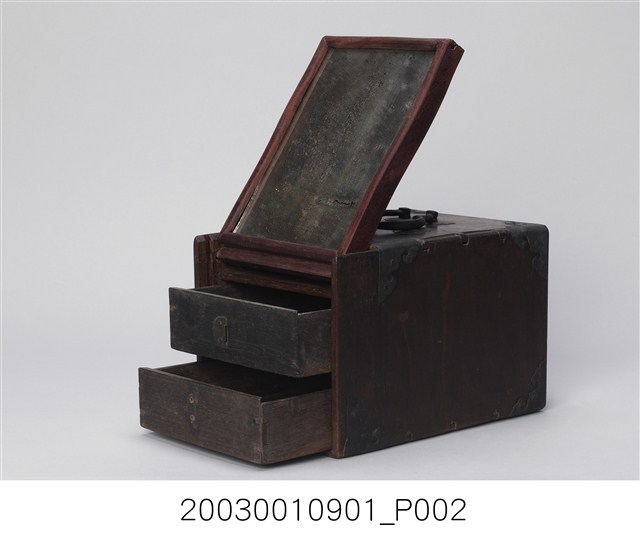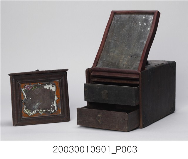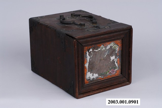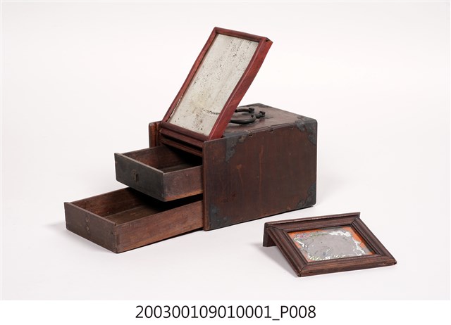 2003.001.0901.0005 彩繪玻璃雙提把乾漆鏡箱下抽屜