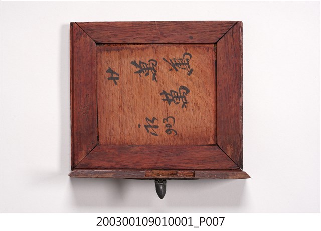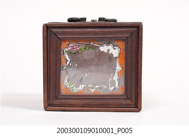 2003.001.0901.0003 彩繪玻璃雙提把乾漆鏡箱鏡板