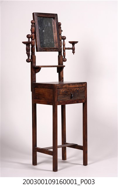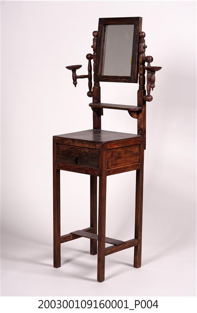 1. 簡榮聰,2000。臺灣傳統家具,頁:240、244。中壢市:桃園縣文物協會。2. 杜宛錚,2004。數位典藏臺灣傳統家具之研究-以日據時期梳妝臺為例。雲林:國立雲林科技大學工業設計系碩士班碩士論文。