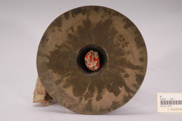 3. 鈸,俗稱為「鈔」,為青銅材質,通身沒有紋飾,使用時雙手分直繫於突起處之布條互擊。在祭典、儀式中中使用的鈸,尺寸有大小兩種,大的為大鈸,如稱大鈔,直徑約25公分;小的為小鈸,俗稱小鈔,直徑約15公分。