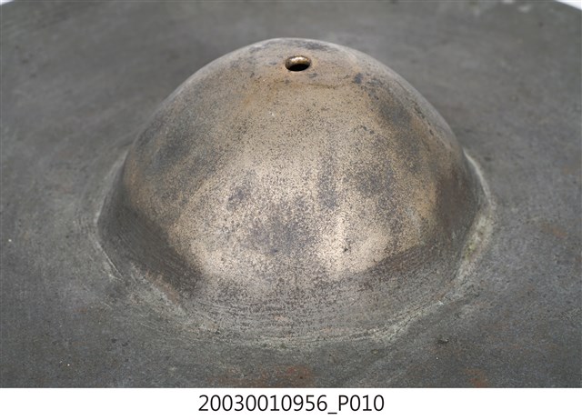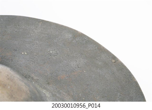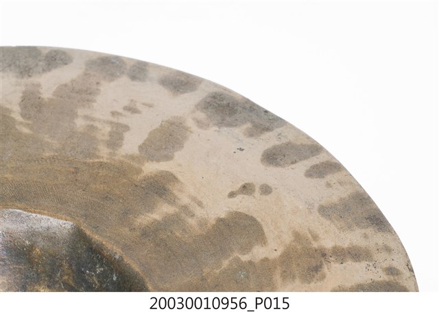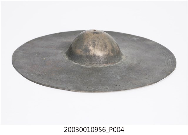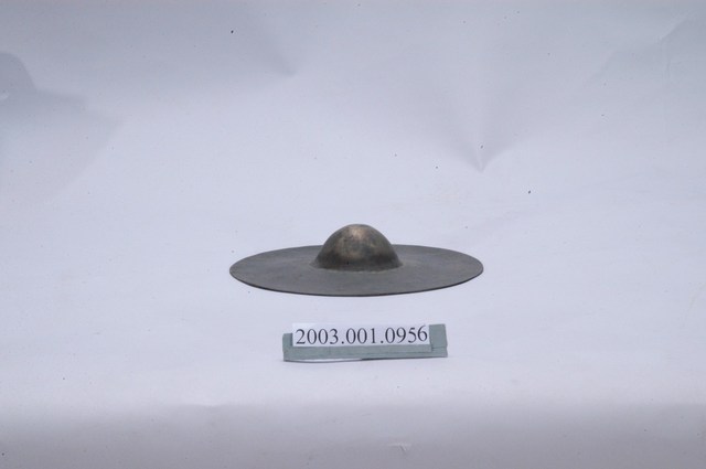 1. 本件為銅製拔,為單邊,鈸的形制完整,鈸頂處有洞但無握把,物件本身有刮痕及銹斑明顯。