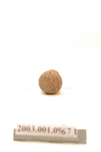 石杵為圓柱型棒狀石材,經由打製成為上窄下寬的型制,下端有一處明顯塊狀崩解痕跡。使用時以寬面端搗碎或研磨食材。
